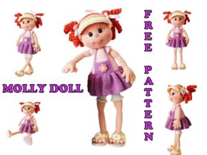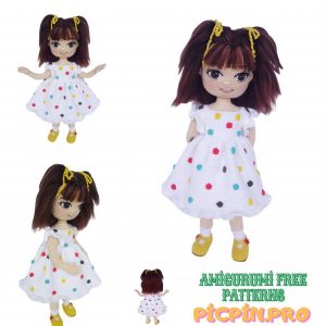Pinterest Offical Page : Picpin.pro Facebook Group: Amigurumi Free Patterns Facebook Offical Page: Free Amigurumi Picpin I am sharing amigurumi doll patterns free of charge with you. You will love this wonderful amigurumi molly doll pattern. Materials  1. Yarn – Gazzal Baby Cotton (50 g – 225 m)  2. Safe eyes – 12 mm  3. Filler  4. Crochet hook 2.0 mm  5. Buttons  6. Felt  7. Tape  Abbreviations  sc – single crochet  hdc – half double crochet  dc – double crochet  inc – increase  dec – decrease …