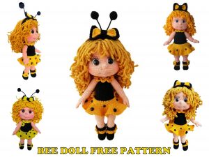 Pinterest Offical Page : Picpin.pro Facebook Group: Amigurumi Free Patterns Facebook Offical Page: Free Amigurumi Picpin I am sharing wonderful amigurumi doll patterns with you for free. You will love this amigurumi bee doll pattern. Materials  1. Yarn Art Begonia yarn (50g / 169m) flesh-colored No. 6322, Alize Diva yarn (100g / 350m) black (No. 60) and yellow (No. 216)  2. Yarn Alize Forever (50g / 300m) yellow (No. 488) for a wig  3. Hooks No. 1,5 and No. 1,1  4. Filler  5. Eyes with a diameter of 12 mm  6. Cilia …