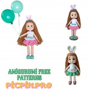 Pinterest Offical Page : Picpin.pro Facebook Group: Amigurumi Free Patterns Facebook Offical Page: Free Amigurumi Picpin I continue to share the most beautiful amigurumi doll patterns for you free of charge. You will love this amigurumi bunny doll pattern too. Material Used  Tan Himalayan delux bamboo  dress alize coton gold  headband himalayan delux bamboo  Women’s booties yarn knitting hair  Eyes 12 mm  Needle. 2.00mm  HEAD  1) 6sc into magic ring  2) 6inc=12sc  3)(1sc1inc)*6=18sc  4)(2sc1inc)*6=24sc  5)(3sc1inc)*6=30sc  6)(4sc1inc)*6=36sc …